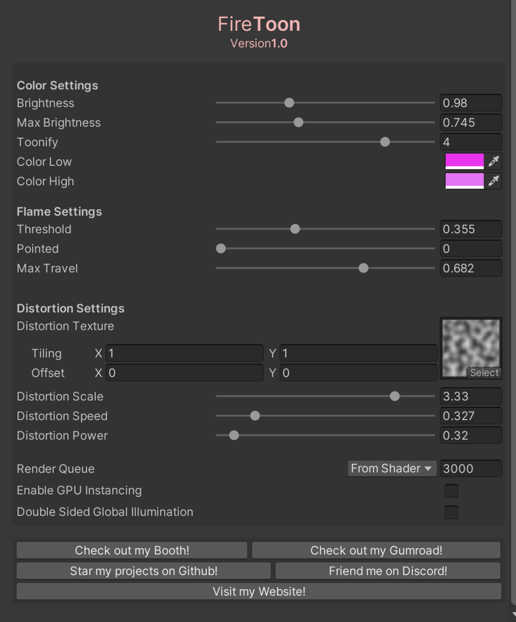 - Toon Fire Shader: supports controlling the shape of the flame with a slider as well as the "toon" stylization strength