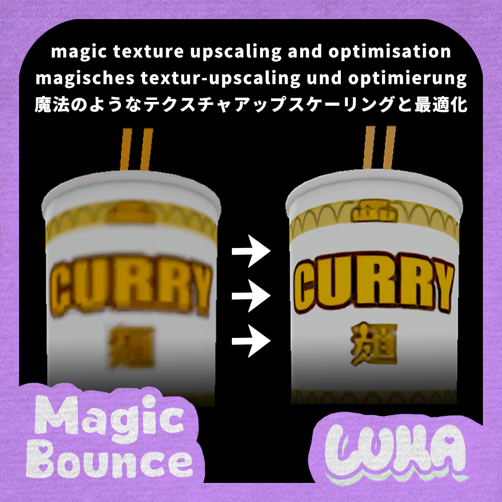 MagicBounce is an A.I. texture upscaler, optimiser, and editor script that integrates directly into your Unity project. With it, you can make your textures look more crisp, have a smaller file size, and bake in watermarks and colour grading without relying on editing materials. โœจ